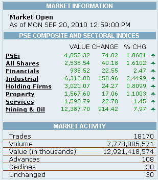 The Philippine Stock Market continues to defy all odds at the start of this week, pushing the all time high to 4,053. 32 (PSEi) with winners (108) trumping loosers (30) yet again.